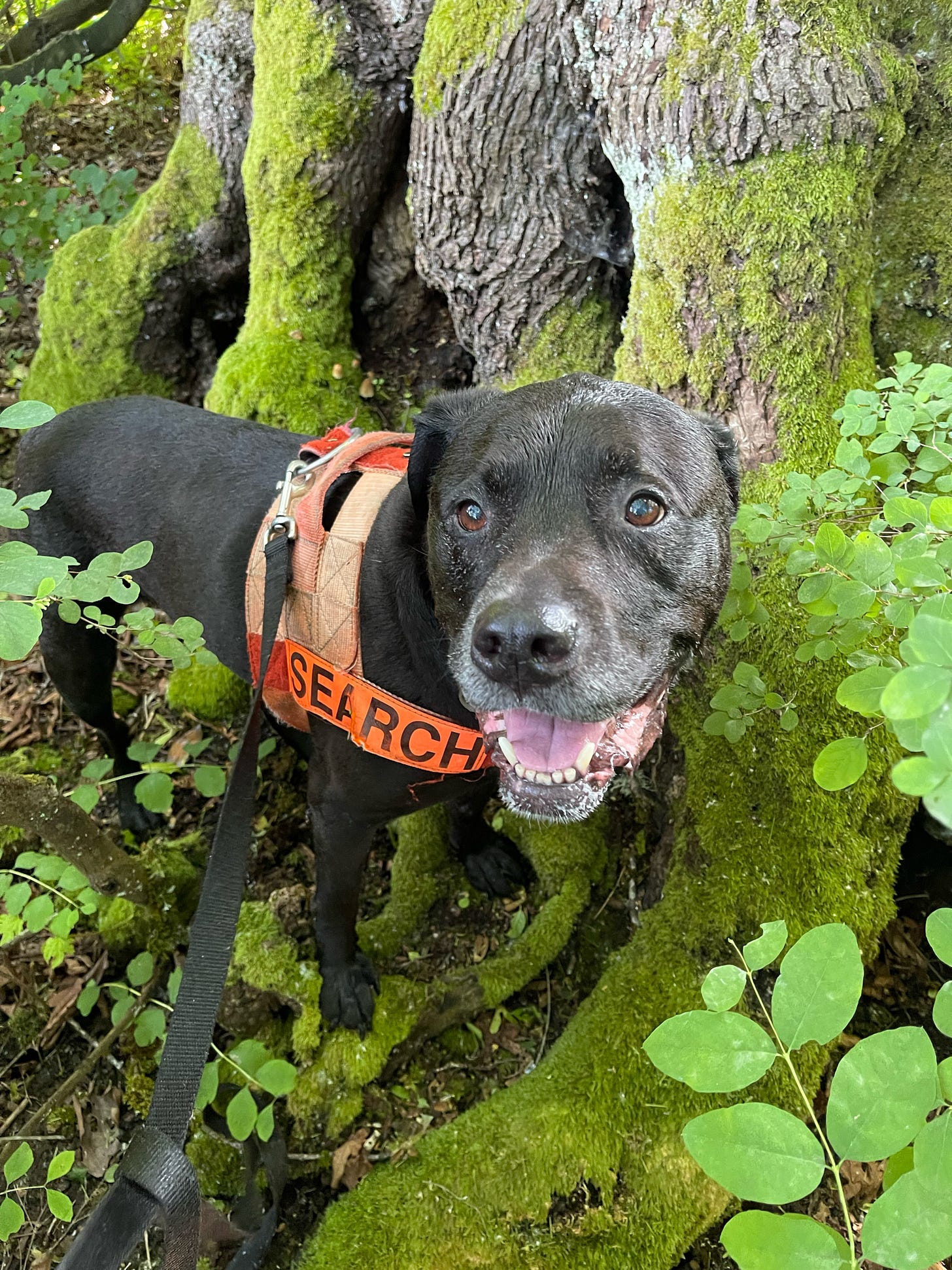 We started at 8 AM. It was a little warmer than we would like, but well inside Mu’s operating range. I looked at the situation and it seemed like it wouldn’t be a good search for Tino because we just couldn’t get anywhere very fast in that brush. If Tino did get a good scent trail to follow, we would be stopped by brambles right away.