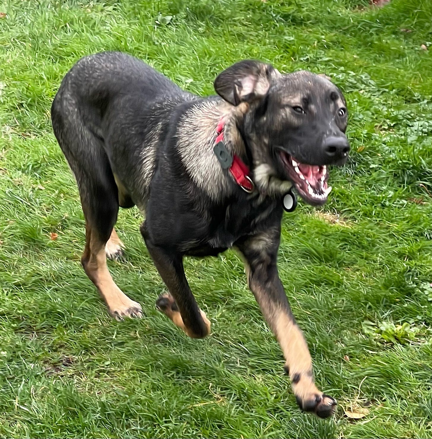 I first met Raphael on August 20th. 4 puppies had been reported to animal control as having been dumped, apparently, in the forest near a mountain bike trail on Rattlesnake Mountain. Catching four dogs at once is not easy. It’s something I had never tried before. Animal Control contacted me because my nonprofit, Useless Bay Sanctuary, has helped them catch difficult dogs in the past. We have the techniques, equipment, and patience to help stray dogs when other organizations are less well suited to the task. Tino and I drove up to Rattlesnake Mountain and met Shannon, an employee of the Department of Natural Resources, the agency responsible for that forest. She had been watching them all day and trying to get the cyclists to dismount from their bikes and walk past the dogs in order to avoid instigating a chase. The puppies had nipped at several people who biked past, and one person had threatened to shoot them.